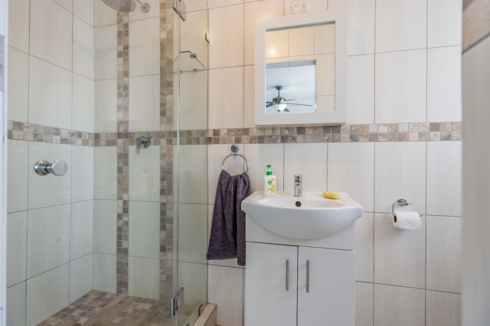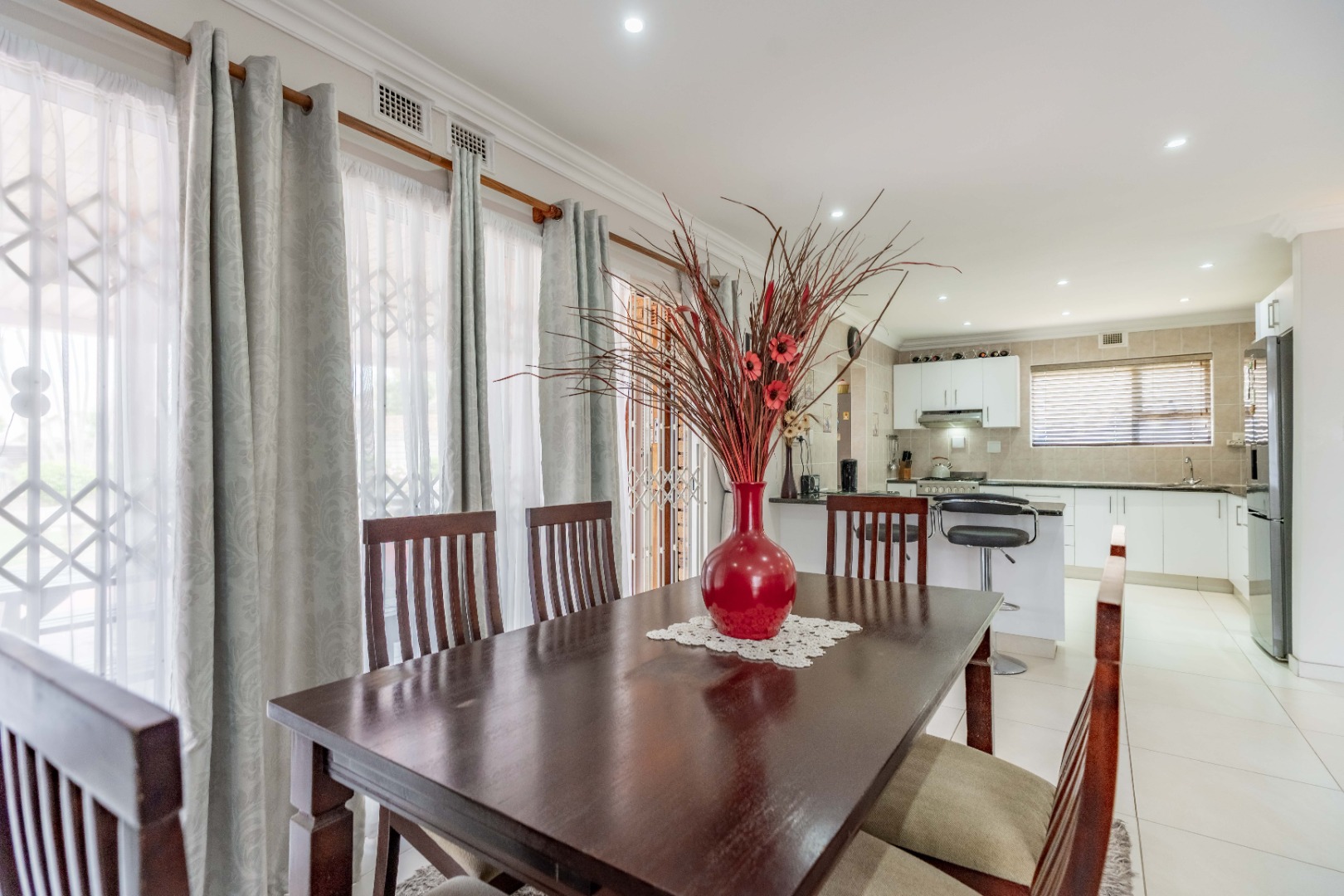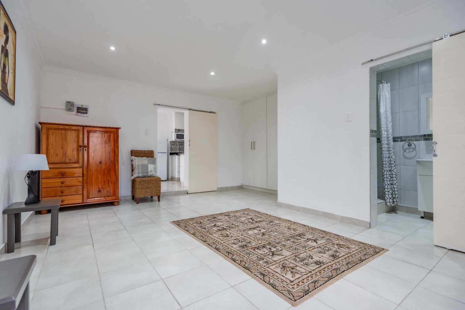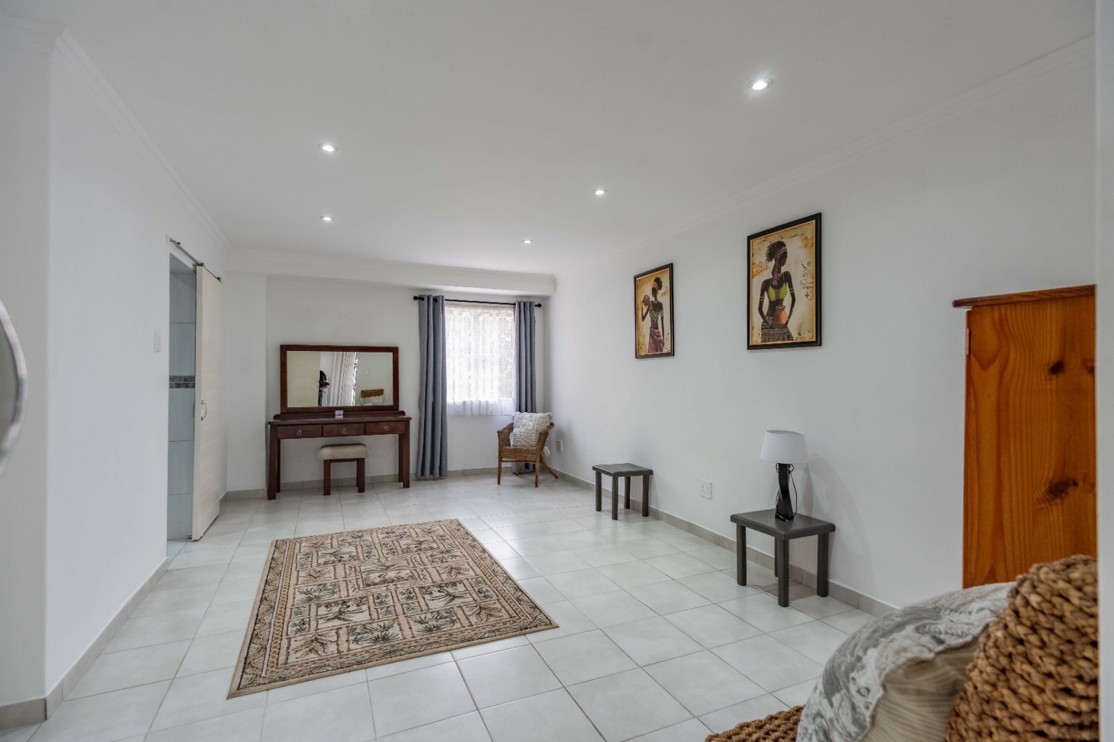 The property offers two comfortable bedrooms, each complemented by its own en-suite bathroom, ensuring privacy and convenience. Outside, a well-maintained garden provides a serene escape, perfect for relaxation or outdoor entertaining. Enjoy the fresh air from the patio, an ideal spot for morning coffee or evening gatherings. The property also boast of a fully fitted flatlet with one bed and an en-suite for rental or external family living The presence of water tanks contributes to water resilience, a valuable feature for sustainable living. The interior boasts neutral tones, tiled flooring, and modern recessed lighting, creating an adaptable canvas for your personal style. The contemporary kitchen is a highlight, featuring sleek white cabinetry, dark granite countertops, a breakfast bar, and a convenient pantry.