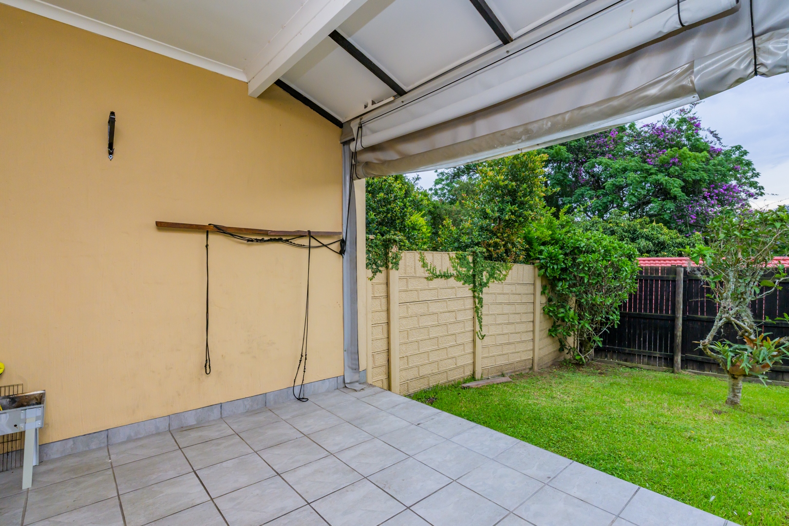 The charming cottage-style pine kitchen is warm and inviting, offering ample cupboard space and flowing effortlessly into a neat, tiled courtyard—ideal for laundry day or quiet morning coffees. The covered, fully tiled patio extends your living space outdoors and leads into a private, manicured garden, perfect for entertaining, unwinding after a long day, or simply enjoying a peaceful moment in your own sanctuary.