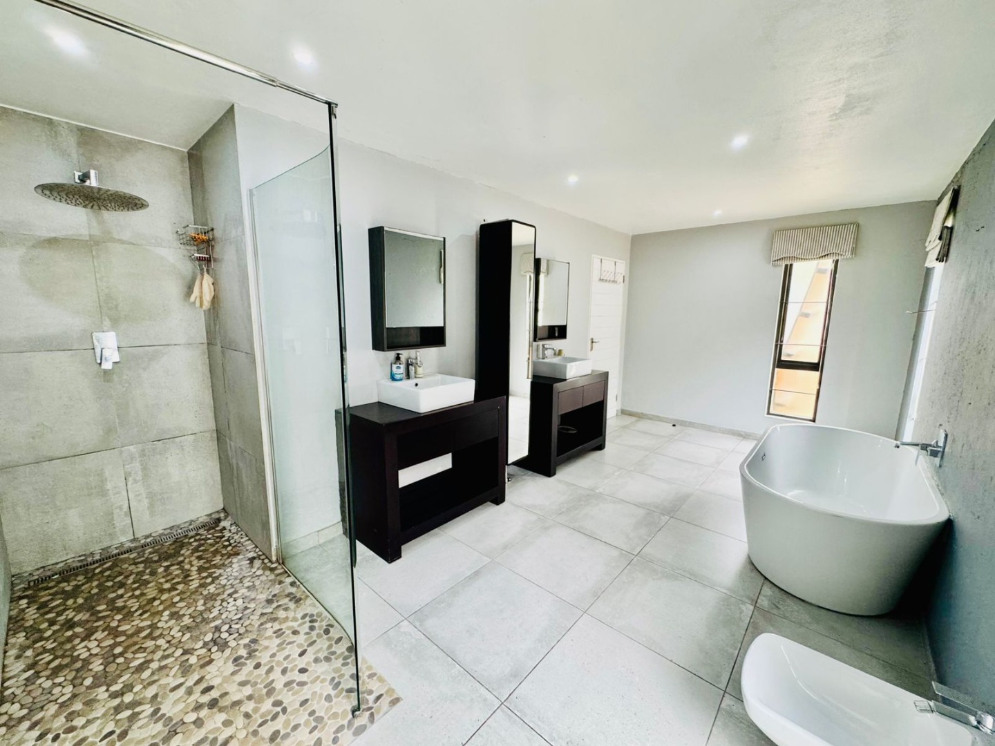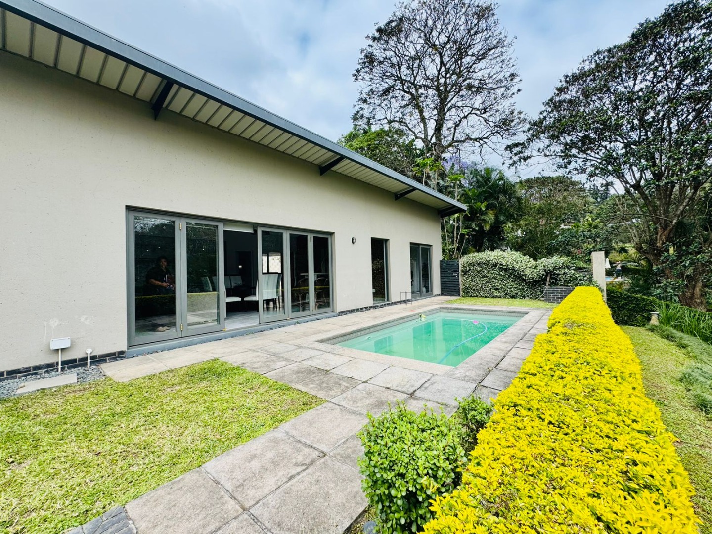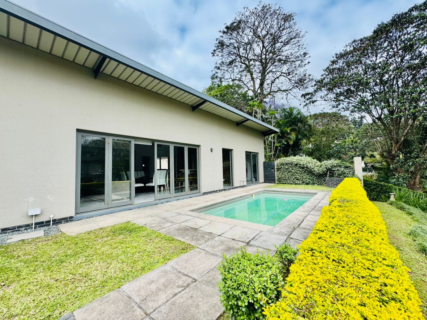 Nestled in the sought-after suburb of Cowies Hill, this stylish modern home combines sophistication, comfort, and effortless entertaining. From the moment you step through the welcoming entrance, you’re met with a beautiful balance of warmth, functionality, and contemporary design.Just off the entrance, a sleek home office provides the perfect space for remote work or quiet creativity.The open-plan living area forms the heart of the home, seamlessly connecting the lounge, dining room, and kitchen. Large glass doors open onto an enclosed veranda, creating an easy flow between indoor and outdoor living. Overlooking a beautifully landscaped garden, this space is ideal for both relaxed evenings and lively gatherings.The modern kitchen is thoughtfully designed with a spacious scullery and direct access to a private courtyard, ensuring everyday living is both stylish and practical.Offering four generous bedrooms, this home perfectly suits family living. Three of the bedrooms feature en-suite bathrooms, while three also open directly to the garden through sliding doors, allowing natural light and fresh air to fill the rooms. Air conditioning throughout adds to the comfort, while modern finishes and creative details bring a unique touch of character.Step outside to a peaceful garden retreat, centered around a magnificent mature tree that offers shade and charm. A built-in braai and inviting entertainment area make it the perfect space for hosting family and friends.Additional features include: • Two JoJo tanks for water efficiency • Double automated garage • Comprehensive security system with cameras surrounding the propertyThis is more than just a home — it’s a lifestyle. A place where modern living meets natural beauty, where families thrive, and memories are created. Whether you’re a young family, a professional seeking sophistication, or someone who values a home with heart, this Cowies Hill gem is ready to welcome you.Don’t miss out on this exceptional opportunity to own one of Cowies Hill’s most beautiful modern homes.Modern Elegance in the Heart of Cowies HillNestled in the sought-after suburb of Cowies Hill, this stylish modern home combines sophistication, comfort, and effortless entertaining. From the moment you step through the welcoming entrance, you’re met with a beautiful balance of warmth, functionality, and contemporary design.