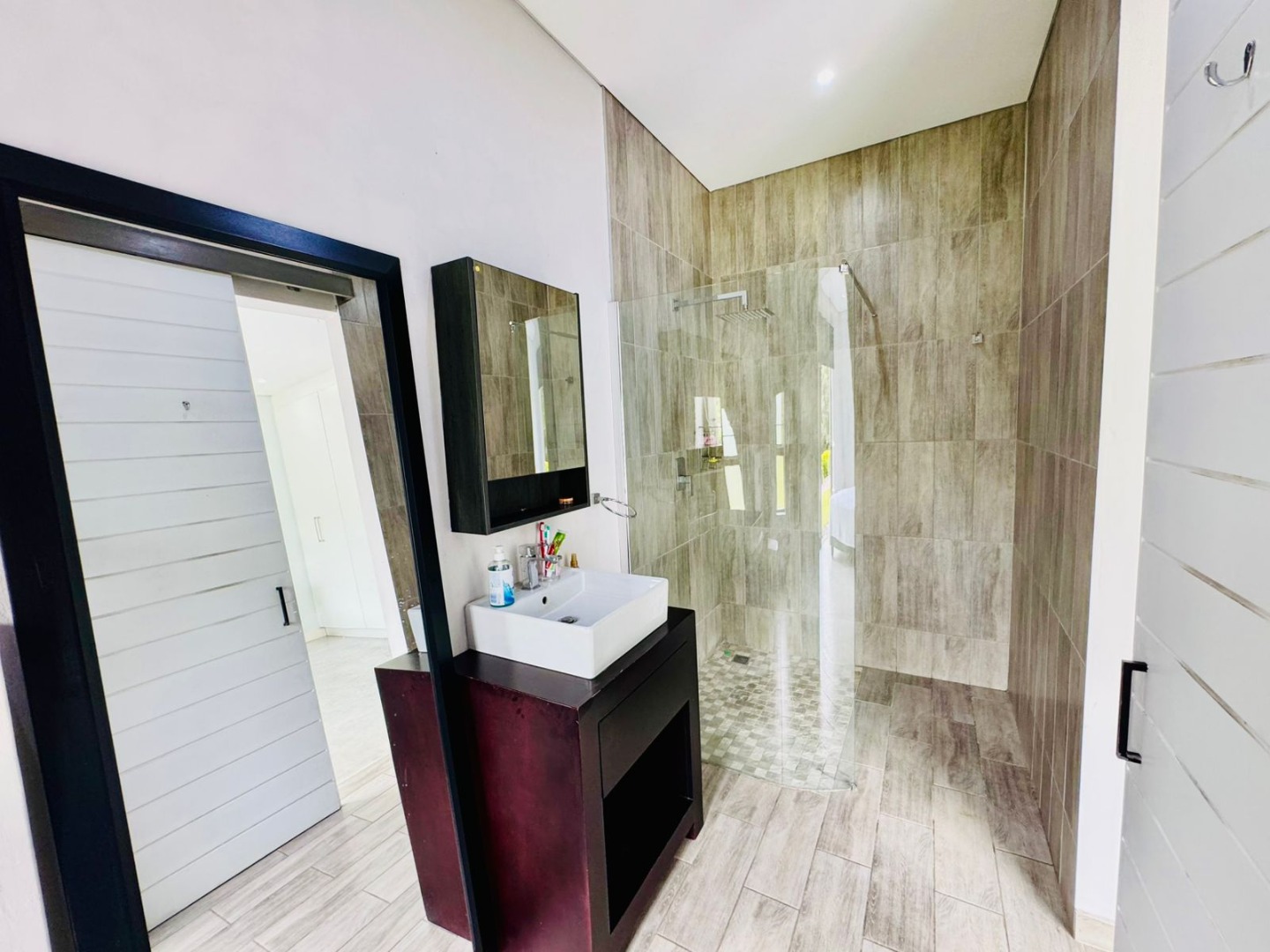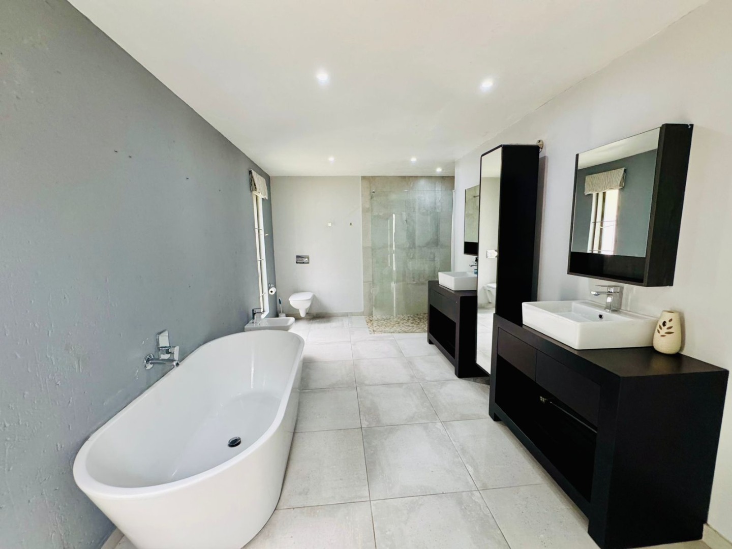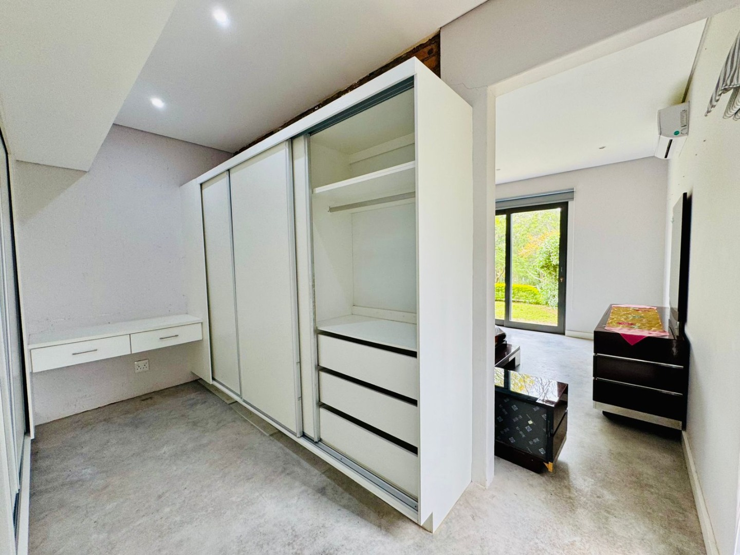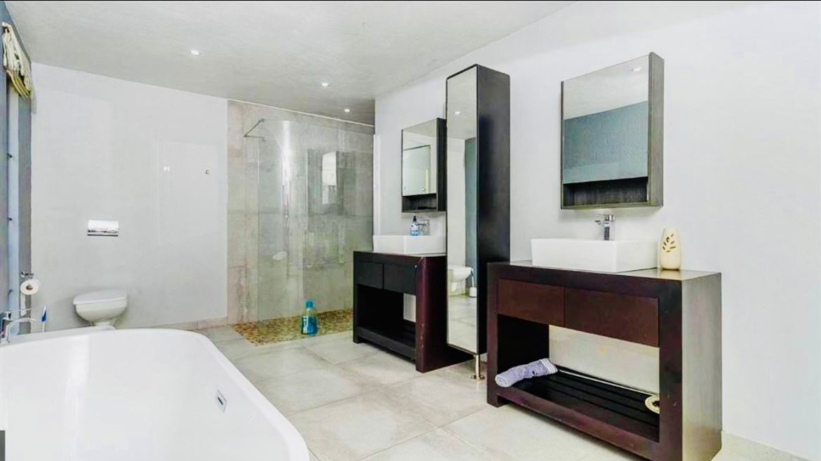 Offering four generous bedrooms, this home perfectly suits family living. Three of the bedrooms feature en-suite bathrooms, while three also open directly to the garden through sliding doors, allowing natural light and fresh air to fill the rooms. Air conditioning throughout adds to the comfort, while modern finishes and creative details bring a unique touch of character.
