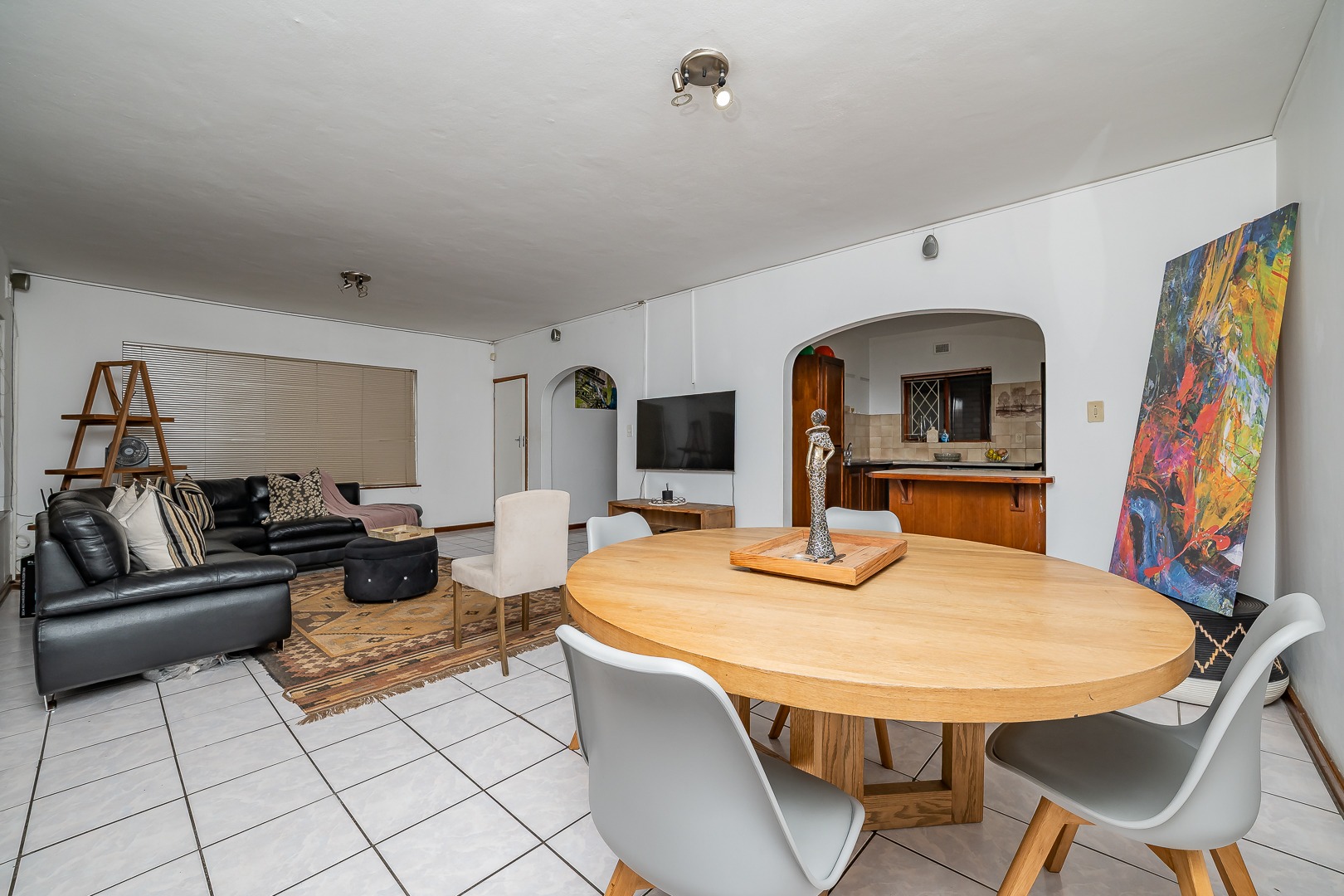 The home features a fully equipped kitchen that flows seamlessly into an open-plan lounge and dining area, creating a warm and inviting space for everyday living and entertaining. Sliding doors lead out to a covered awning fitted with wind blinds, overlooking a private garden—ideal for relaxing or hosting guests. Downstairs also offers the convenience of a guest toilet. Upstairs, you’ll find three spacious bedrooms with built-in cupboards. The main bedroom boasts its own en-suite bathroom, while a full family bathroom services the remaining bedrooms. Additional features include a single lock-up garage with an extra carport, ensuring secure parking. Residents of the complex enjoy access to fantastic communal amenities, including a sparkling swimming pool, play area for kids, and braai facilities—perfect for social gatherings. Bonus: Two small pets are allowed with permission, making this the perfect home for animal lovers. A fantastic opportunity to secure a stylish, low-maintenance home in a popular complex—don’t miss out!