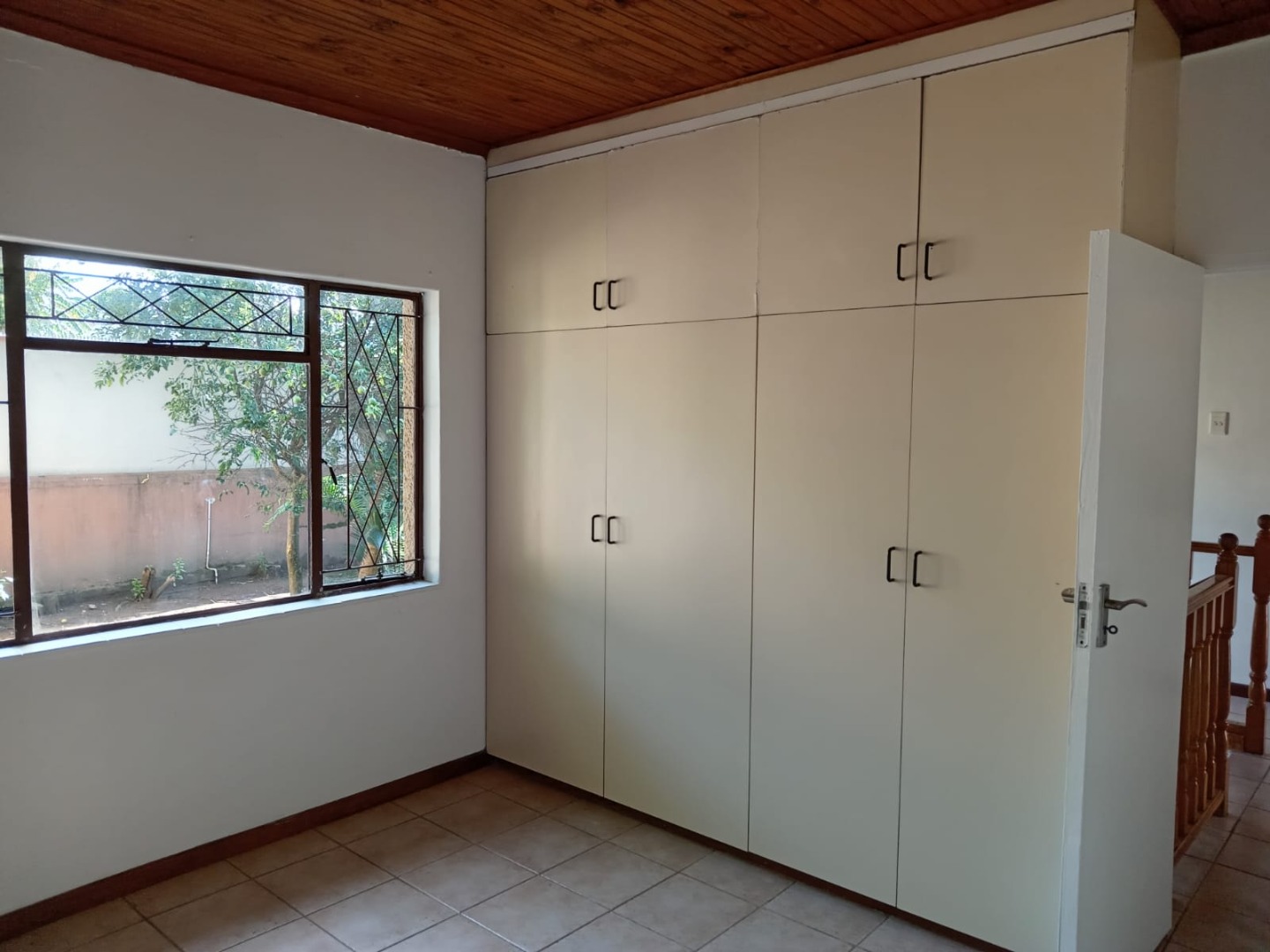 SPACE and SECURITY in an intimate little complex. Spacious and roomy 5-bed, 2.5 bath home that has been freshly painted throughout. Downstairs is fully tiled, with an open-plan kitchen and dining room, lounge and a TV lounge. There is a guest loo and a downstairs room that can be used as either a study/office or as the 5th bedroom. Regrettably, you have to bring your own stove. There is also a separate laundry area off the kitchen.